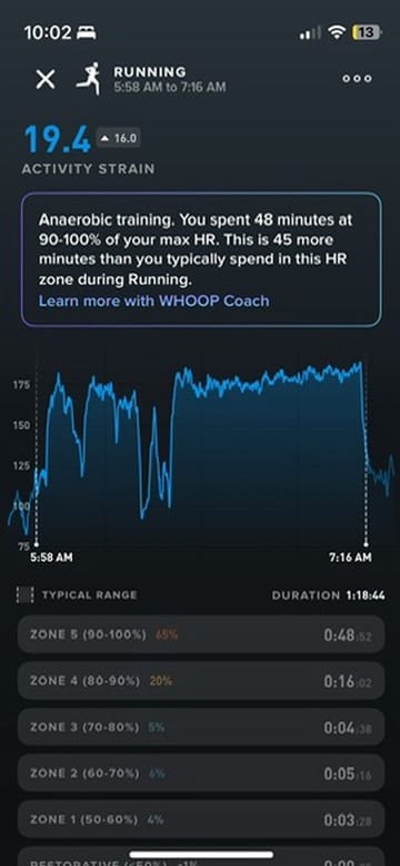 Here is my heart rate data from the race.