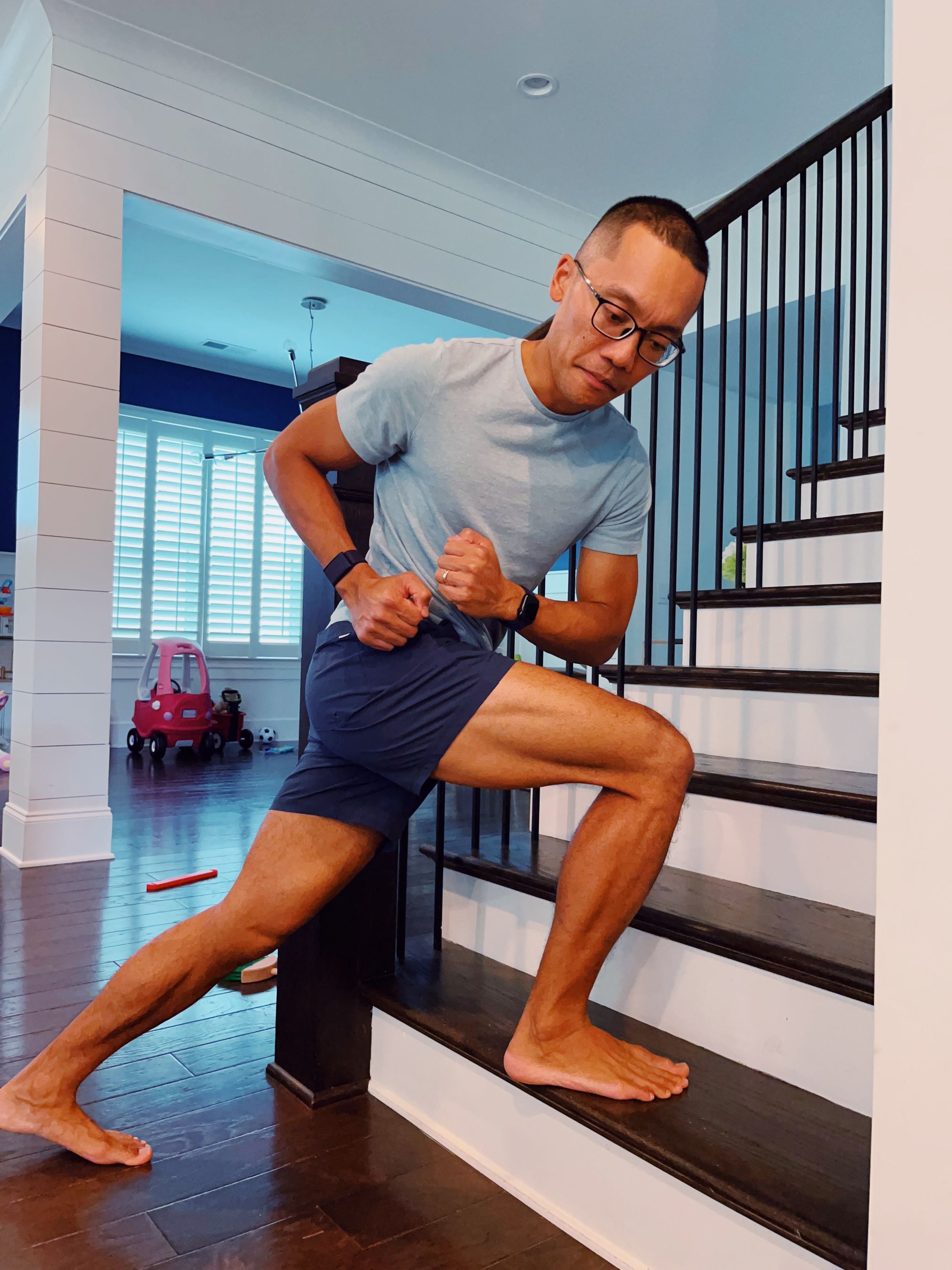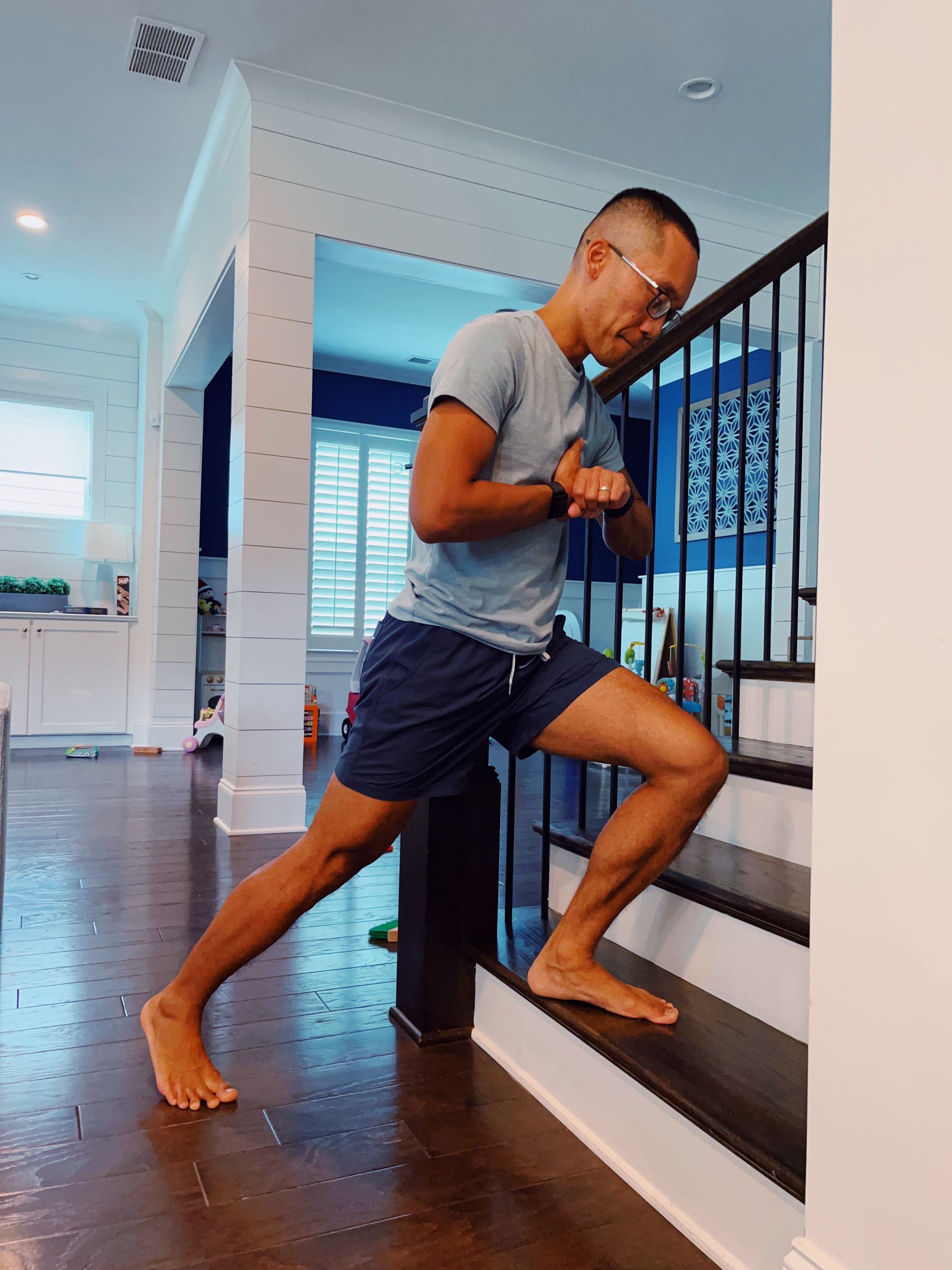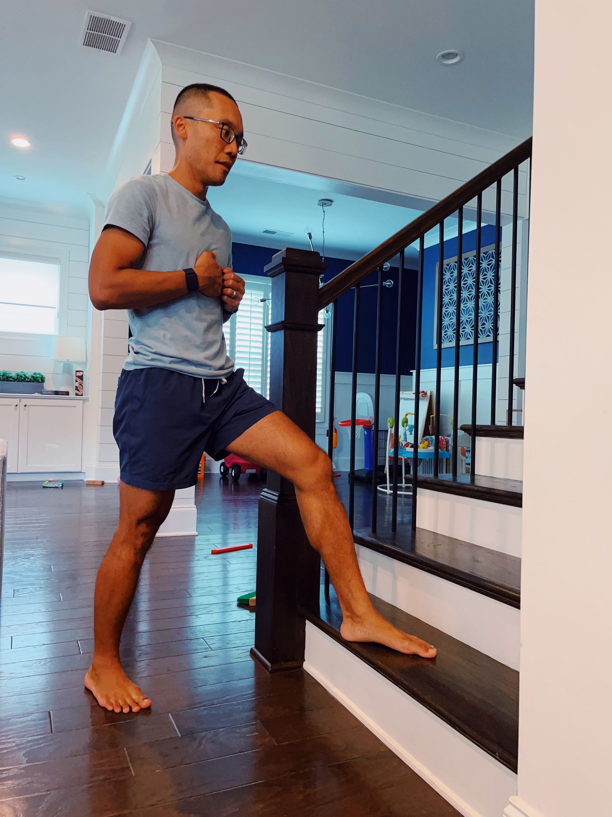 Place your foot on a step. Shift your weight forward, driving your knee to go forward past your toes. Pressure should be on your forefoot while keeping you front heel down. This will target your quadriceps. Perform 3 sets of 10 reps.