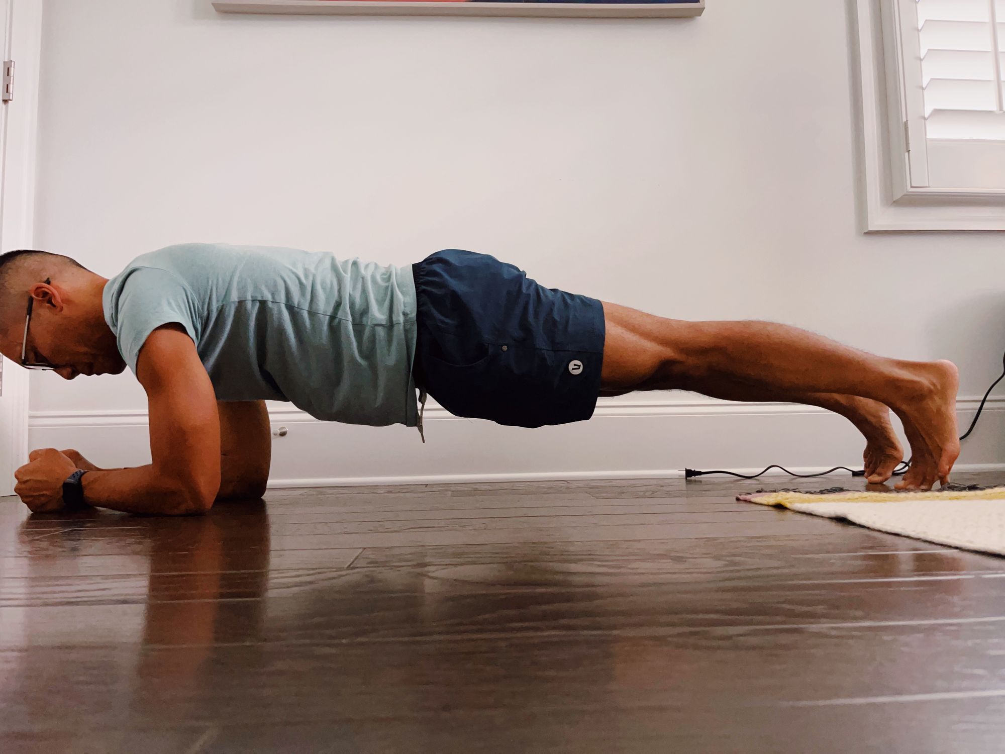 Often considered an exercise for your core, the plank can also target the quadriceps too. Set yourself up in a plank position and focus on locking out your knees straight to activate your quadriceps. Perform 3 reps, 30 seconds each.